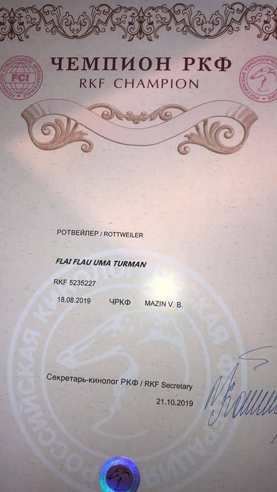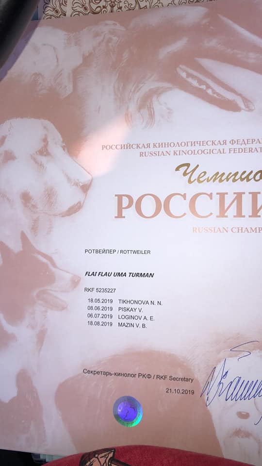 Поздравляю Деревянкину Светлану с получение Титулов Чемпион России Чемпион РКФ Флай Флау Ума Турман ( Нью Форт Нокс с Берега Туры - Флай Флау Желанная Влади Мира)